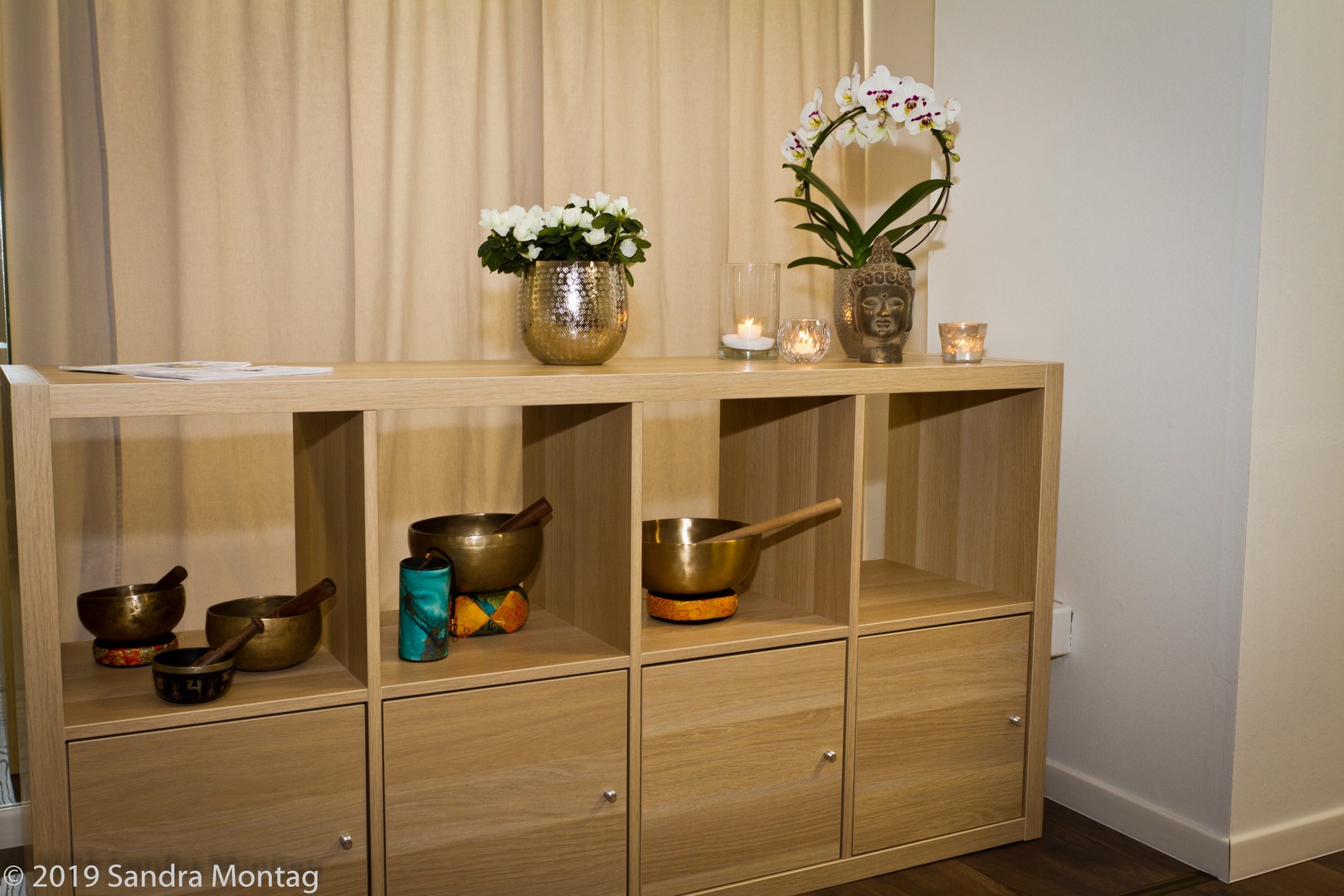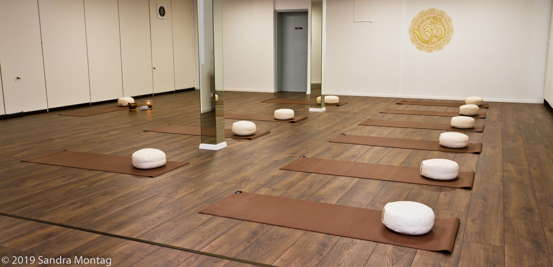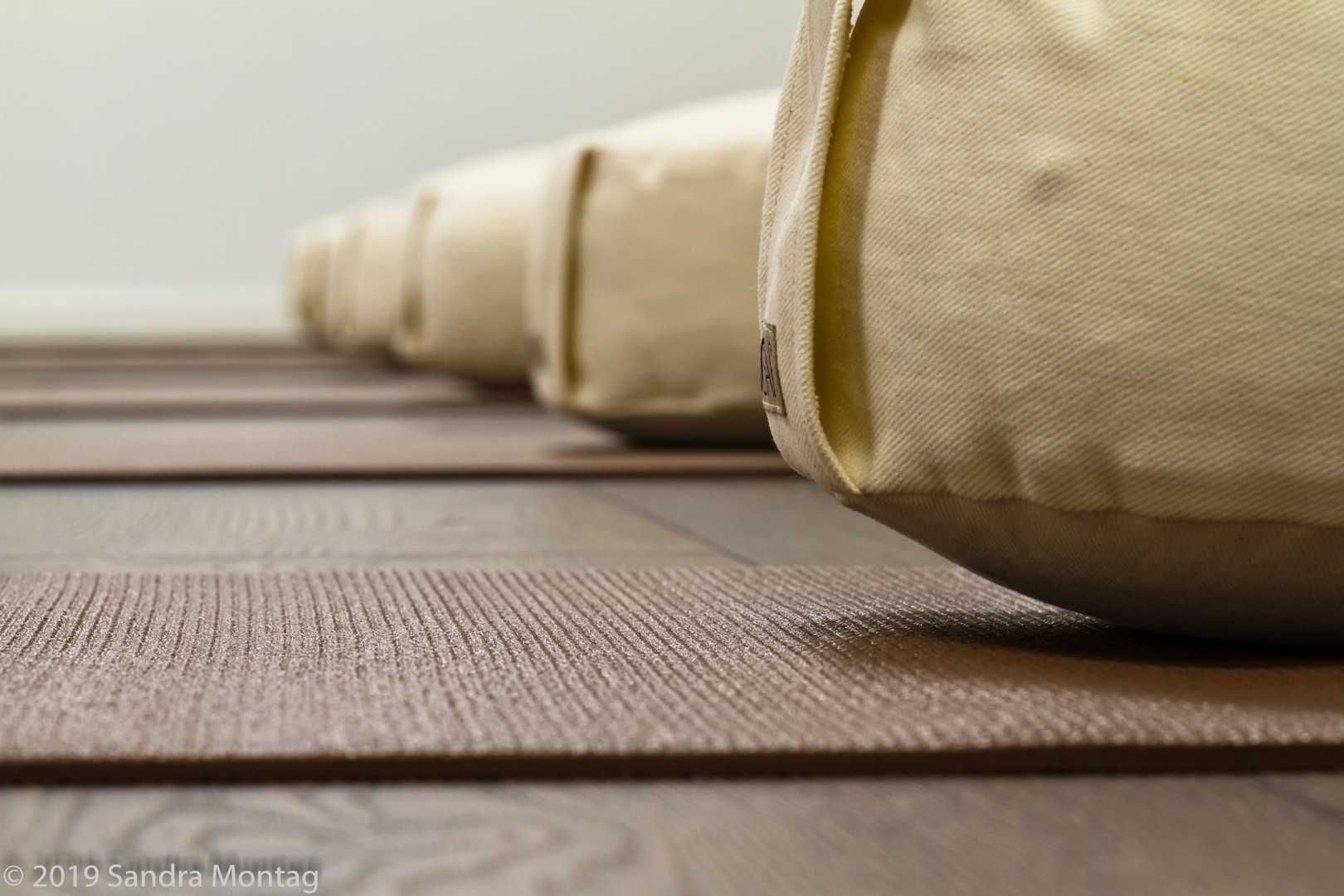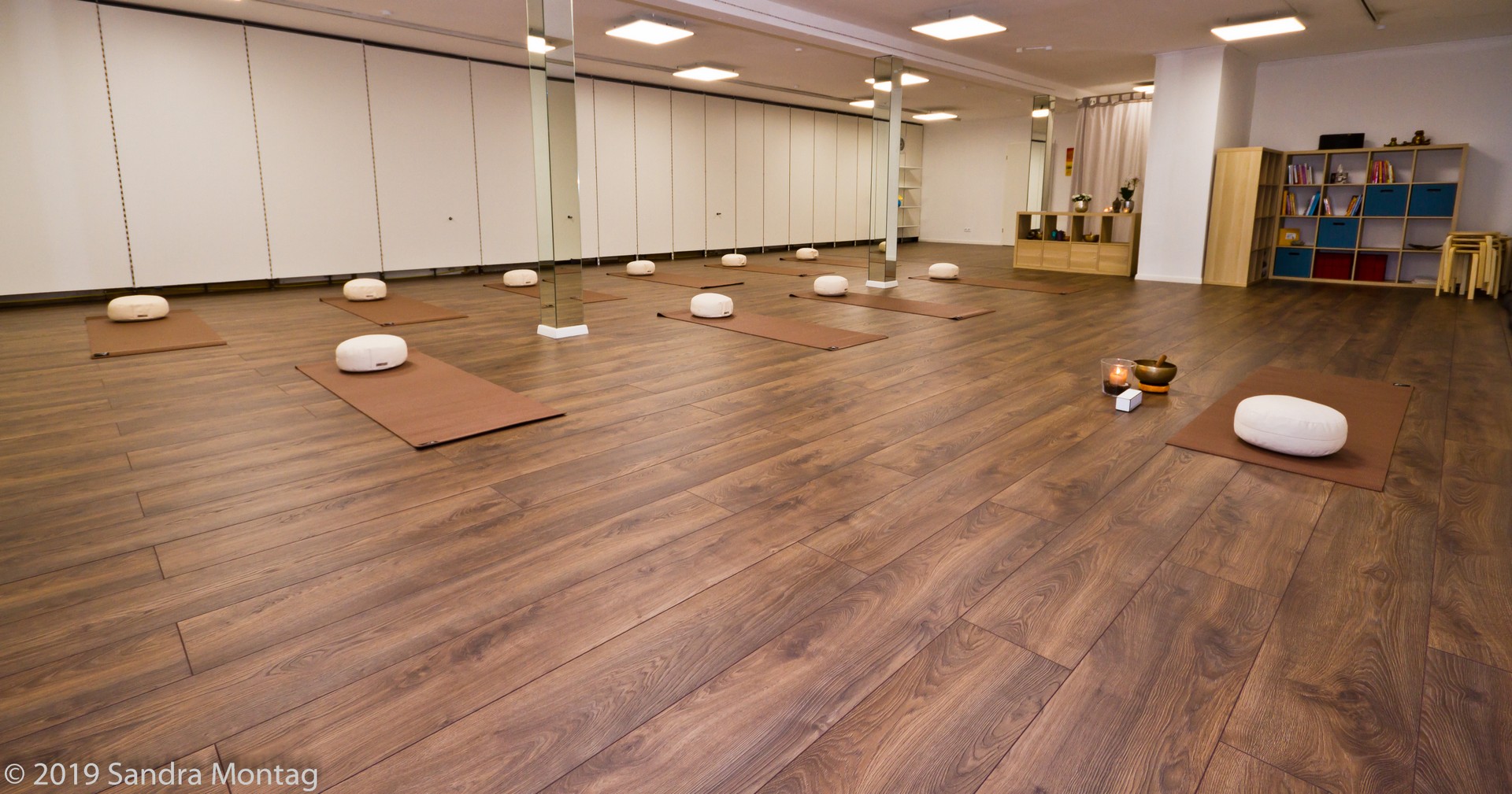Für die Kursabende/Workshops vorhanden sind Matten, Kissen, Hocker und sonstige Hilfsmittel, die bei Bedarf