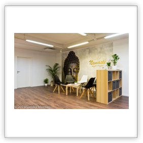 Der liebevoll eingerichtete Yogaraum bietet auf großzügigen 110m²